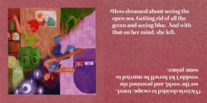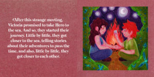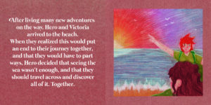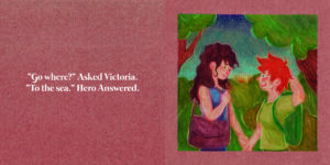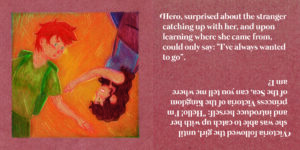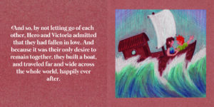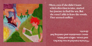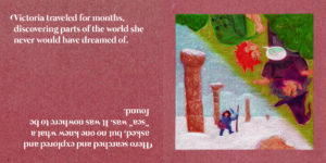 This is a childrens book, fully written and Illustrated by Noel. It tells two paralel adventure stories, which end up mixing into one. This is reflected both by how the physical book is meant to be read, and the illustrations themselves.
